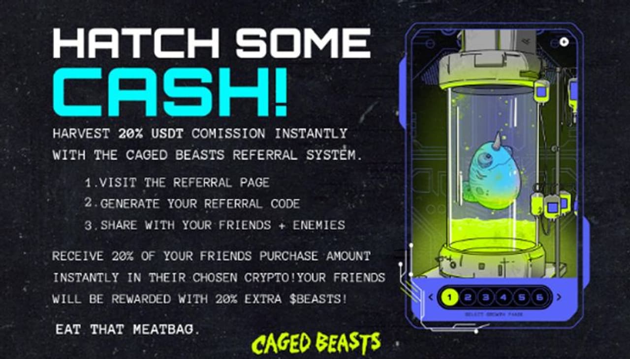 Sign up on their user-friendly platform to kickstart your journey with Caged Beasts and receive a unique referral link. Share this link with your friends, family, and social media followers, inviting them to join the Caged Beasts community. As your referrals sign up and engage with the platform, you'll earn a substantial passive income, setting the stage for financial freedom.