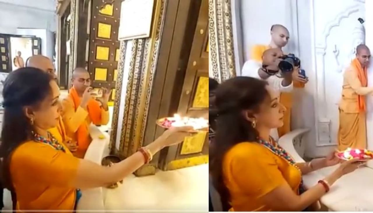 Celebrating Maha Shivratri, Hema Malini, Indian actress and BJP MP from Mathura, visited Ujjain's Iskcon temple. She performed aarti in a mustard saree