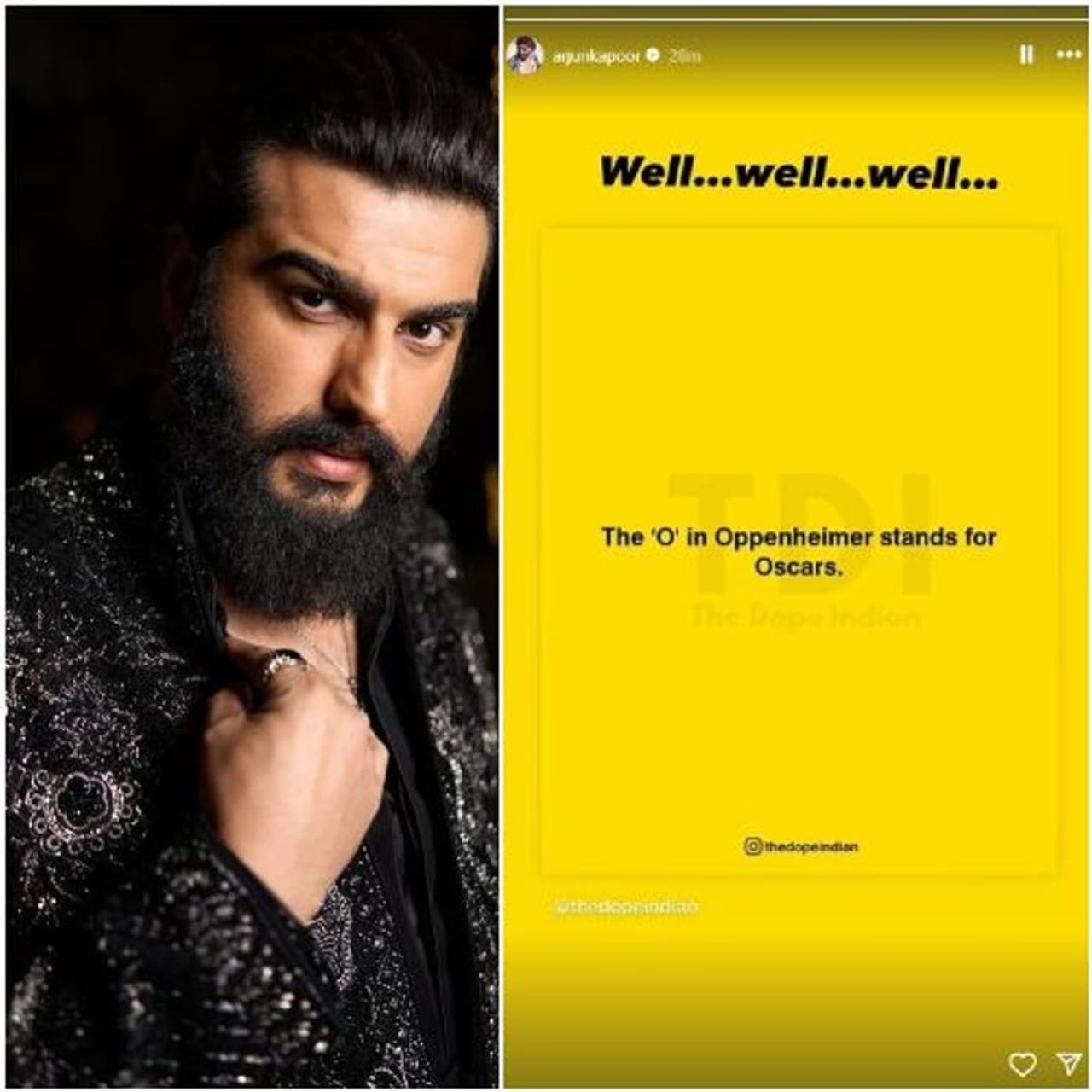 Renowned Bollywood actor Arjun Kapoor expressed his excitement for 'Oppenheimer's' remarkable victory on March 11, via his Instagram handle. Kapoor shared a meme celebrating the film's triumph with a playful nod, captioning it, 'The O in Oppenheimer stands for Oscars,' accompanied by the remark, 'Well…Well…Well.'